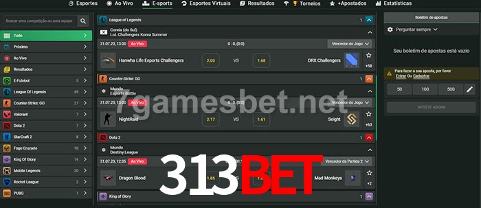 O 313bet oferece uma grande seleção de opções de apostas em e-sports com probabilidades competitivas